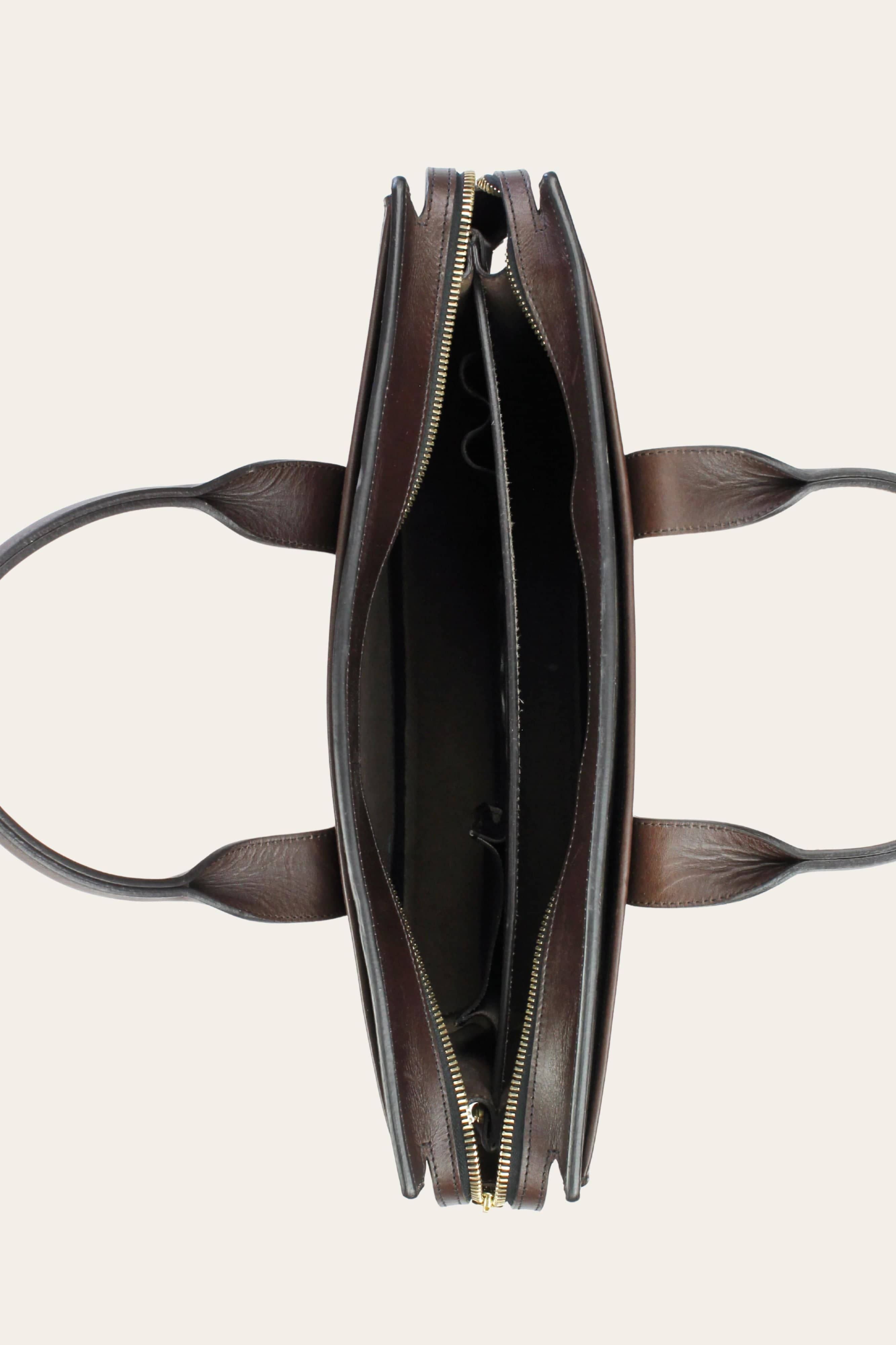 I always loved briefcases but never felt comfortable carrying them—they often seemed too formal and rigid for my "casually tailored" style. When designing the ideal briefcase for the AOS x FCL collab, I wanted something that could pair effortlessly with a suit but also elevate a more casual look. Not quite a messenger bag (I’m not a fan), but with a similar laidback vibe that’s both professional and sharp. Frank's double-gusset zip-top briefcase was the answer. It’s the perfect work bag for daily use—just toss in your laptop and go, no extra sleeve needed thanks to the built-in divider that keeps your tech safe.
